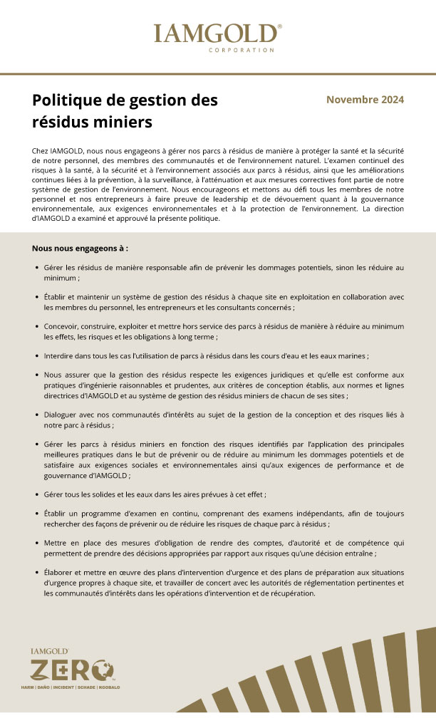 Politique de gestion des résidus miniers